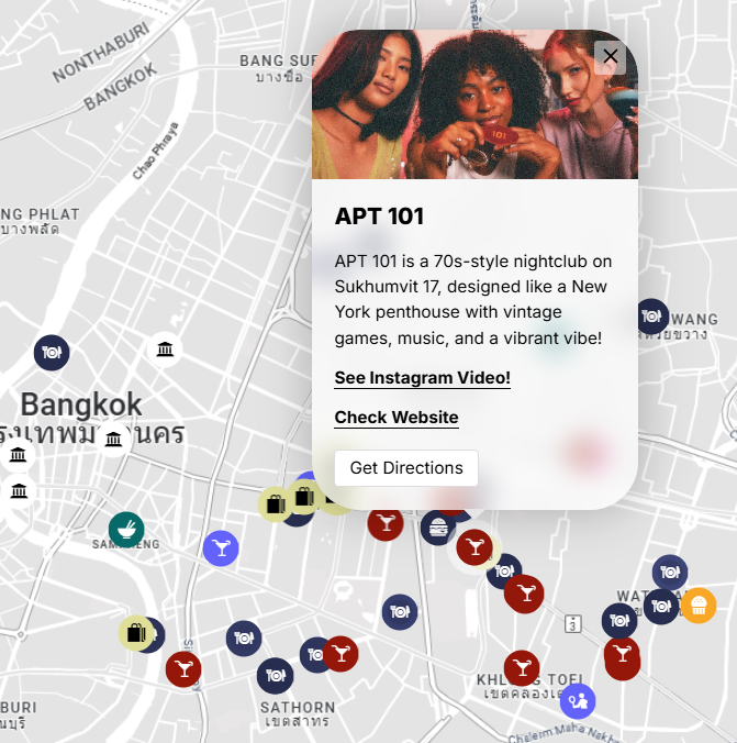 Explore Our Map 🗺️Your Bangkok, simplified. Our interactive map shows you exactly where to go, what’s nearby, and how to make the most of your time. Every location is handpicked, reviewed, and marked so you never waste a moment wondering what to do next.